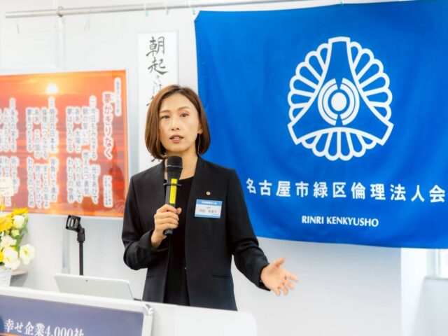 名古屋市名駅倫理法人会モーニングセミナー 2025年2月27日 全国7万社の会員企業が純粋倫理に根ざした「倫理経営」を学び、実践する「倫理法人会」のモーニングセミナーに登壇。 参加率日本1位の活気あふれる単会で、「勤労歓喜 ~私が仕事をする理由~」をテーマに、なぜこんなにも仕事を大切にしているのか、その背景となる成功体験と絶望体験を踏まえて講話。